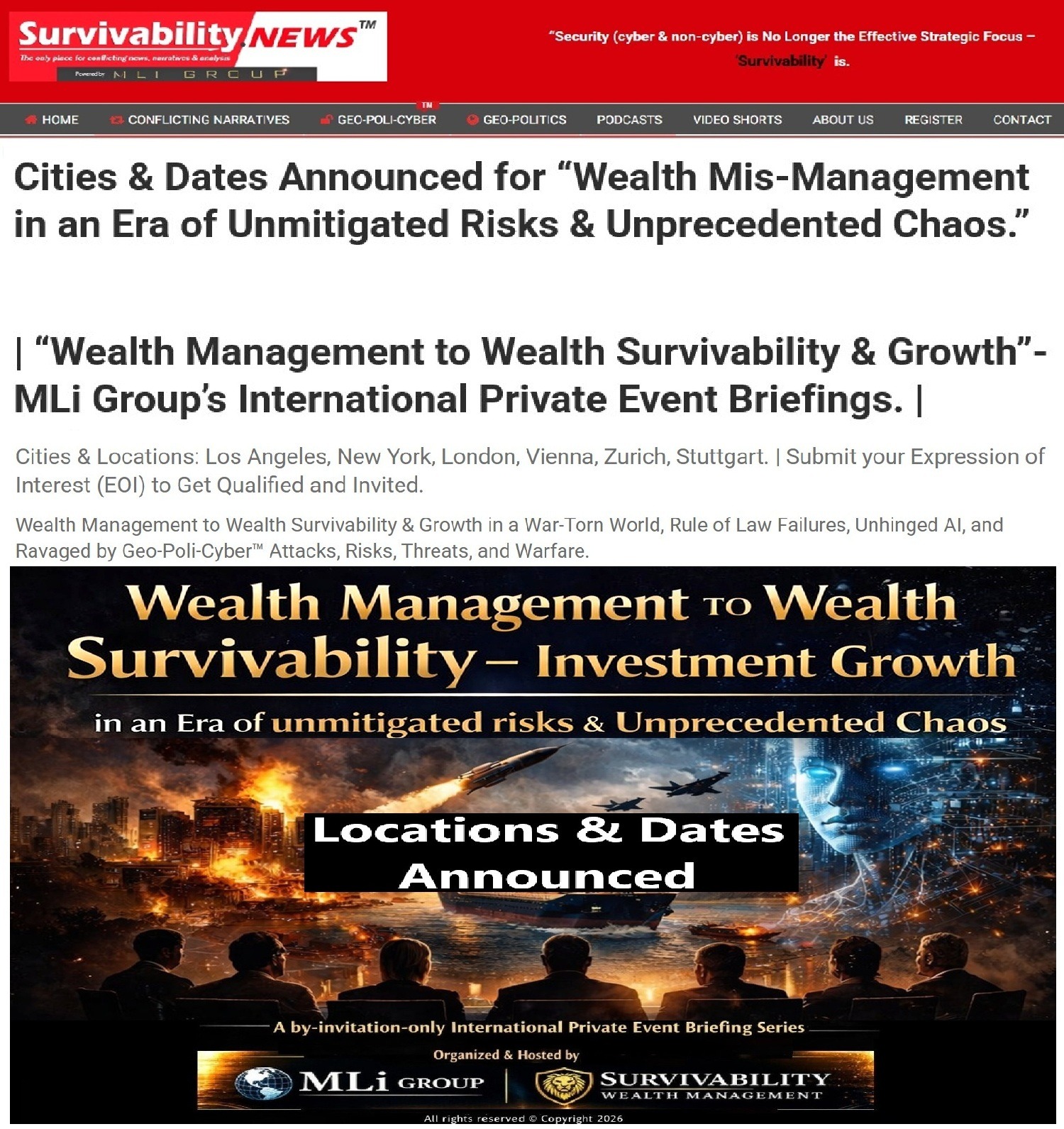 - He even wrote the “bible” on this with his two-time international best-selling book “Survivability” which is today in its 3rd edition.