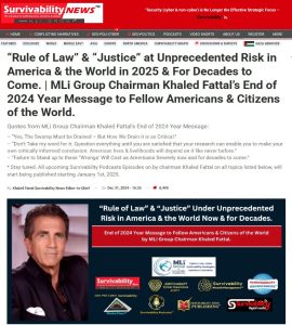 • Khaled Fattal predicted in 2024, with great accuracy, that “Rule of Law” will be broken in the US & Internationally on unprecedented scales by President Trump in his 2nd term.